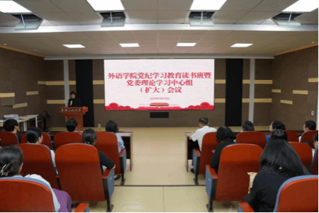 本网讯(通讯员 陈顺)5月16日上午,外语学院党委在学院报告厅举行党纪学习教育读书班暨党委理论学习中心组(扩大)会议,马克思主义学院兰洁副教授受邀作专题辅导报告,学院领导班子成员、党委委员、专职组织员出席会议,会议由学院党委副书记徐思思主持。