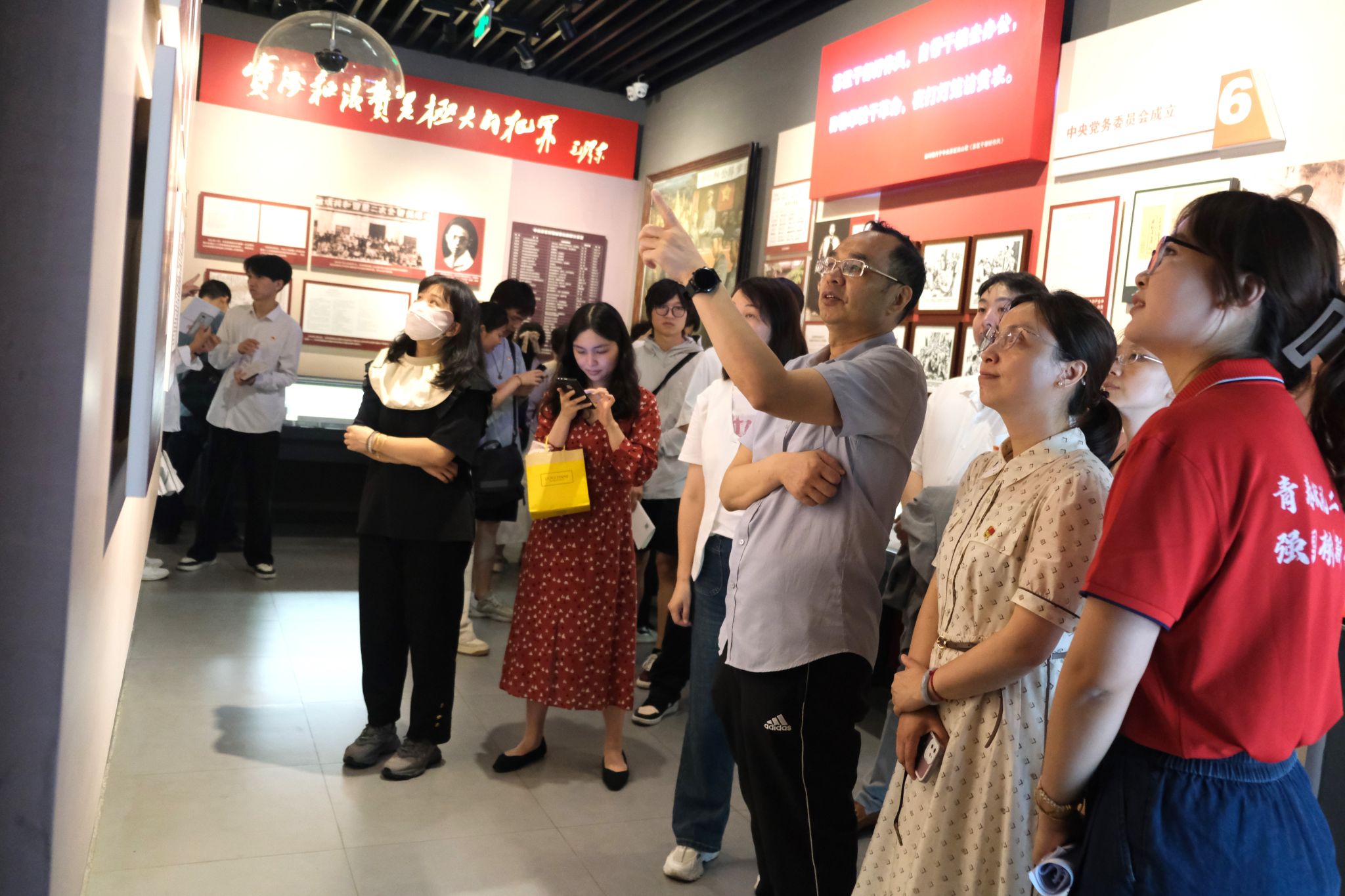 全体师生首先参观了中共五大会址纪念馆,学校马克思主义学院“红心向党”红色宣讲团成员张雅婷等四位同学为大家讲解了中共五大的历史背景。“面对错综复杂、尖锐激烈的国内外政治形势,中国共产党人需要有清醒的认识,采取果断的行动,才能挽救革命”。在这一历史背景下,1927年5月9日,中共五大顺利召开。中共五大在党的历史上第一次设立专门的党的纪律检查机构——中央监察委员会,并制定了监督监察相关制度。