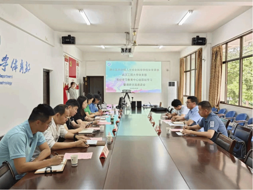 本网讯(通讯员 吴东)6月5日,湖北医药学院体育部主任朱红军、副主任李承龙、教学秘书王锋斌一行到BB贝博体育部联组开展党纪学习教育专题学习暨调研交流活动。体育部领导班子成员,及相关老师参加会议。体育部直属党支部书记、主任万莉莉主持会议。