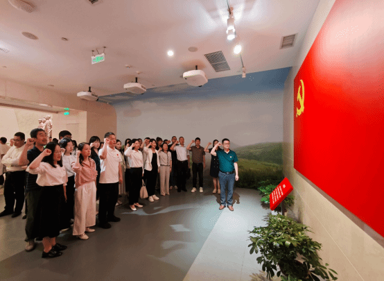 在陈列馆一楼的党旗前,桂展鹏率全体党员举行庄重的重温入党誓词仪式,以铿锵有力的宣誓声,表达不忘初心、牢记使命、奋发有为的信念和决心。