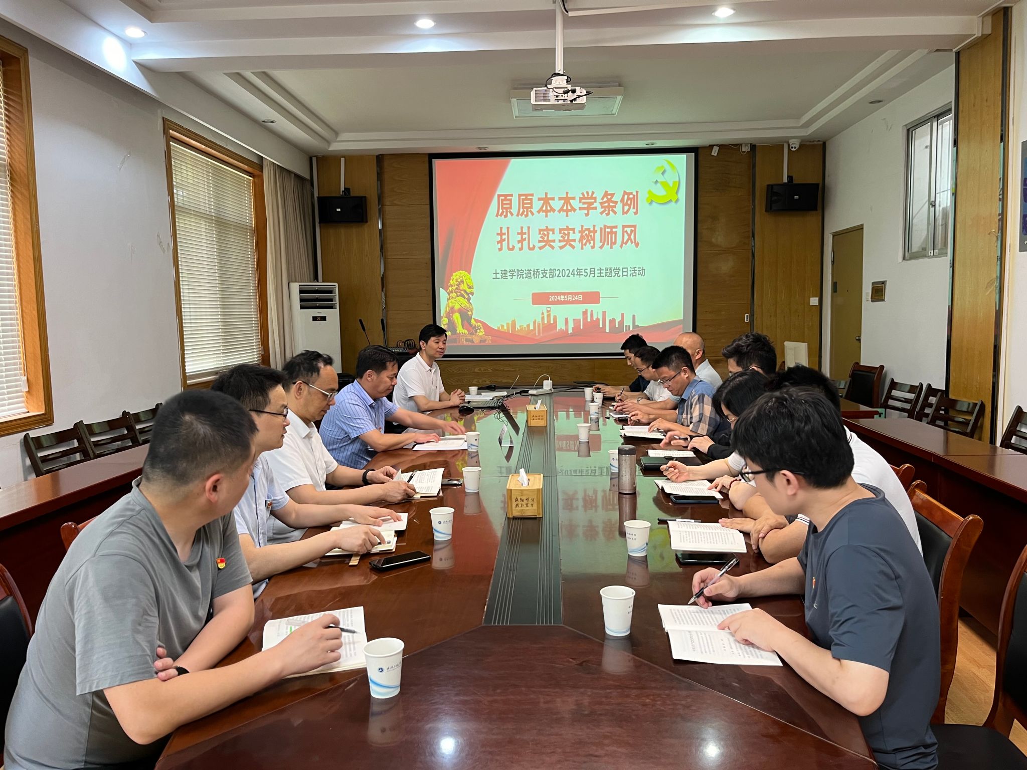 5月24日,校党委常委、宣传部部长韩高军参加土木工程与建筑学院道路桥梁与渡河工程教工党支部“原原本本学条例,扎扎实实树师风”主题党日活动,要求将党纪学习教育与师德师风建设相融合,在全面从严治党严的基调和氛围中塑造“四个引路人”和“四有好老师”。