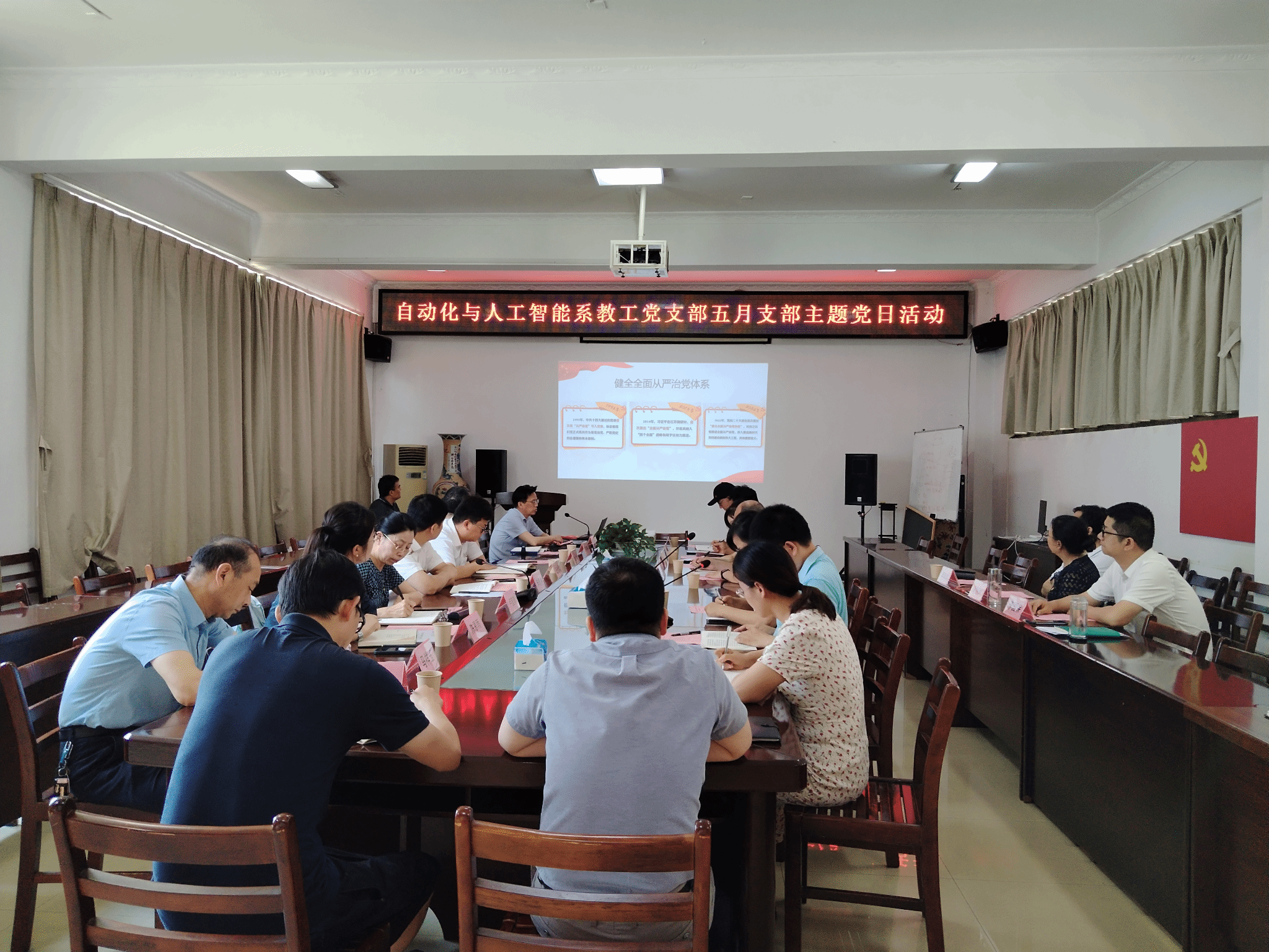 5月23日,校党委常委、副校长朱青林参加电气信息学院自动化与人工智能系教工党支部主题党日活动,与支部成员共同学习党的政治纪律和组织纪律,号召全体党员继续保持对事业的热爱和追求,抓好学风和教风;相互学习、取长补短,共同为学科建设添砖加瓦,以实际行动助推学校高质量发展。