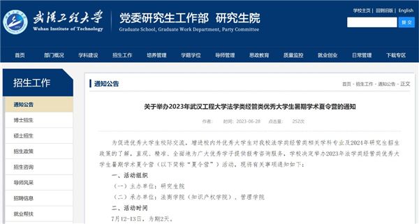 三是试点开展暑期学术夏令营。学院联合管理学院共同承办2023年法学类经管类优秀大学生暑期学术夏令营,促进优秀大学生校际交流,增进校内外优秀大学生对BB贝博法学类经管类相关学科专业及2024年研究生招生政策的了解,直观、精准、全面地为广大优秀学子提供报考咨询服务。