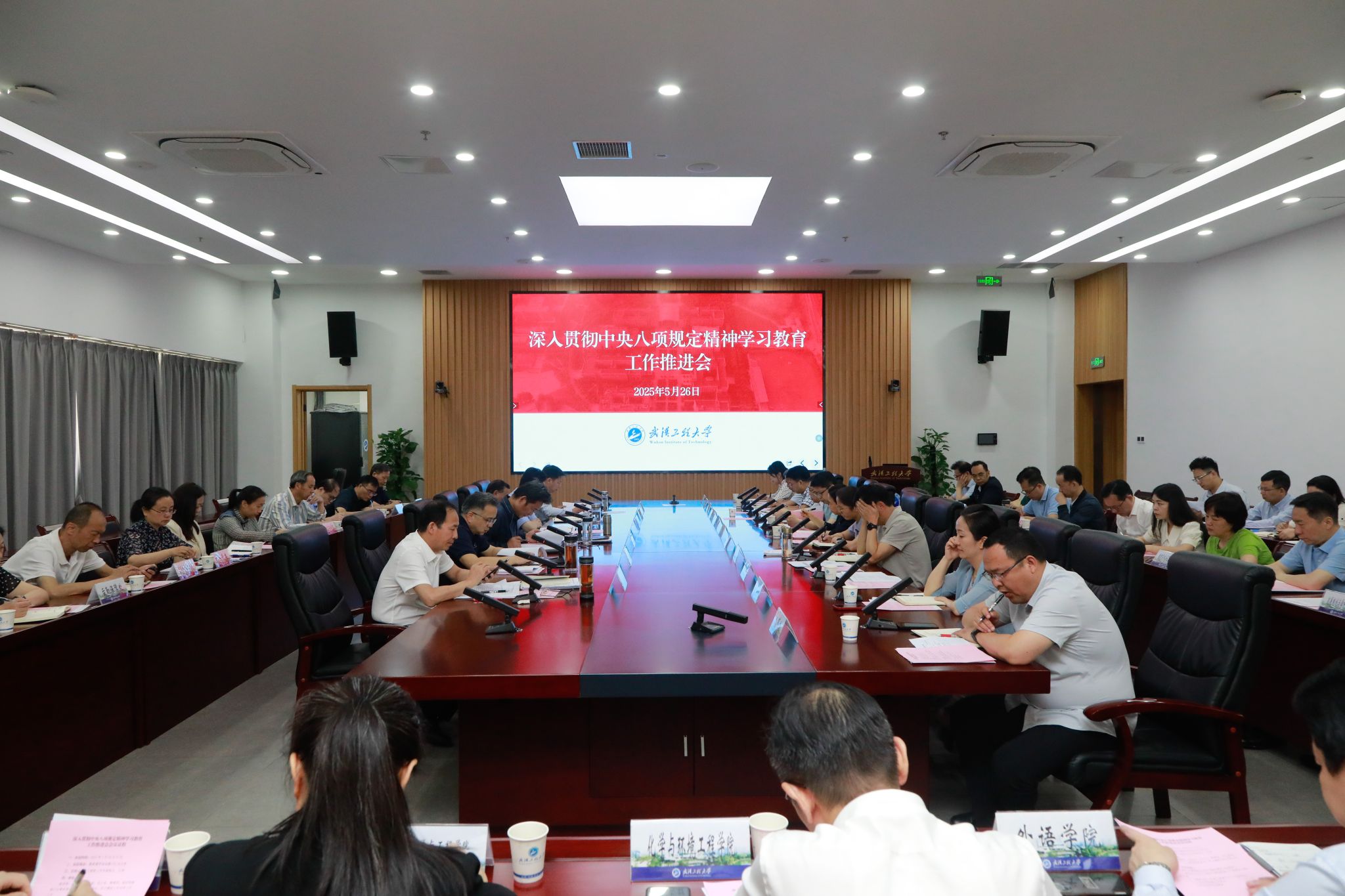 本网讯(通讯员 周雯琪 谭明武)5月26日上午,学校在综合楼103会议室举行深入贯彻中央八项规定精神学习教育工作推进会。校党委书记汪伟主持会议并讲话。校党委副书记、校长张彦铎,校党委副书记(正厅长级)潘慧明,校党委副书记李志旭,校党委常委、副校长、组织部部长马小龙,校党委常委、宣传部部长韩高军出席会议。