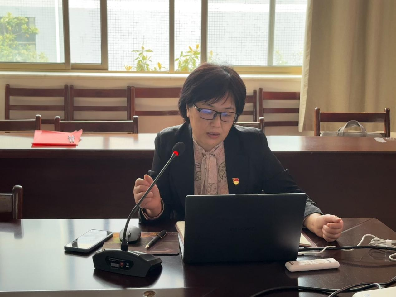 谢春晖以《深入贯彻中央八项规定精神 以优良作风推动事业高质量发展》为题讲授专题党课。她阐释了“中央八项规定”与中央八项规定精神的丰富内涵,总结了党的十八大以来深入贯彻中央八项规定精神的成效和经验,列举了当前违反中央八项规定精神的主要表现,结合工作实际提出贯彻中央八项规定的实践要求。